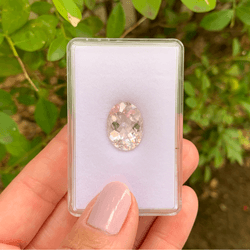 A Morganita é uma pedra preciosa conhecida por seu encantador tom rosa-pêssego, pertencente à mesma família de gemas que a Esmeralda e a Água Marinha — o grupo dos berilos. Sua cor suave e elegante a torna uma das pedras favoritas para joias de noivado e anéis finos. Além de sua beleza estética, a Morganita é valorizada por suas propriedades espirituais, sendo muitas vezes associada ao amor e à compaixão.